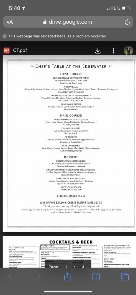 On Christmas Eve, The Chef's Table at the Edgewater will be offering a family style dinner for $ per person. Seating is limited, and pre-paid, non-refundable tickets can be purchased here on our website. Beverages, . percent tax, and percent gratuity will be paid for on the day of the event. Please select your party size below. For parties of larger than , please call the restaurant at --. Your seating is from pm until pm.All allergies must be approved by our culinary team at the time of purchaseWe Reserve The Right To Change Menus Based On Market Availability At The Time Of The Event Without NoticeThis Is A Non-Refundable Pre-Paid Event -- All Purchases Are Final